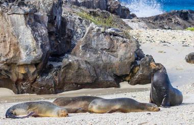 Resting approximately 25 km northeast of Santa Cruz Island, in the exquisite Galapagos archipelago, the elongated shield volcano of Santiago Island, also known as San Salvador Island or James Island, is dotted with Holocene pyroclastic cones. The island’s best site is undoubtedly Puerto Egas where you will find a long, lava shoreline where eroded rock formations are home to an impressive variety of wildlife including an abundance of marine iguanas and fur seals. While geology aficionados should head to Sullivan Bay to witness its black lava flow covered with lava bubbles and tree-trunk moulds, diving enthusiasts can enjoy the renowed dive site of Cousin's Rock, a triangular rock that rises about 10 m (33 ft) out of the water and is made up of many layers of volcanic rock. Don’t miss Espumilla Beach which is fringed by a spectacular palo santo forest that shelters nesting Galápagos green turtles.