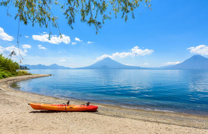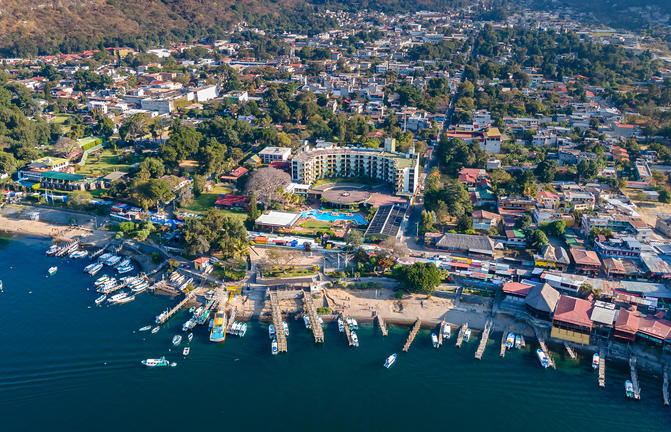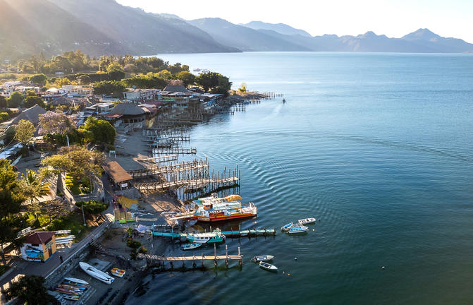 Situada en la costa norte del lago de Atitlán, Panajachel, conocida cariñosamente como «Pana», es una bulliciosa ciudad enmarcada por tres espectaculares volcanes. Es una animada puerta de entrada a las aldeas indígenas del lago y ofrece una colorida mezcla de tiendas de artesanía, mercados, cafeterías y restaurantes. Los visitantes pueden pasear por las calles empedradas, admirar los tejidos tradicionales o tomar un barco para cruzar las cristalinas aguas hasta las aldeas cercanas. Los amantes de la aventura pueden hacer kayak, andar en bicicleta, caminar por los volcanes o explorar la Reserva Natural de Atitlán, donde los puentes colgantes, un santuario de mariposas, tirolesas y una playa privada muestran la belleza natural de la región. El aroma del café recién hecho emana de los cafés, mientras que el suave chapoteo del lago invita a la reflexión tranquila, mezclando cultura, paisajes y aventura.