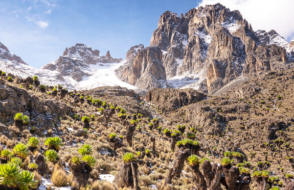 Rising up from the heart of the Kenyan landscape, the snow-capped Mount Kenya is a UNESCO World Heritage Site. It is Africa's second highest mountain reaching an impressive 5199 metres in height, which is an awe-inspiring sight. Visitors can explore its surrounding forests, trout-filled streams and game reserve; more adventurous travellers can summit the peak. While Mount Kilimanjaro is an easier climb, Mount Kenya is more of a challenge as it has a higher technical difficulty, however, Point Lenana can be easily reached by a fit hiker. Visitors can look forward to a variety of wonderful activities such as: cave exploration, mountain climbing, camping, and game viewing. Commonly spotted wildlife include: elephant, mongoose, duiker, bushbuck, eland and over 130 bird species.