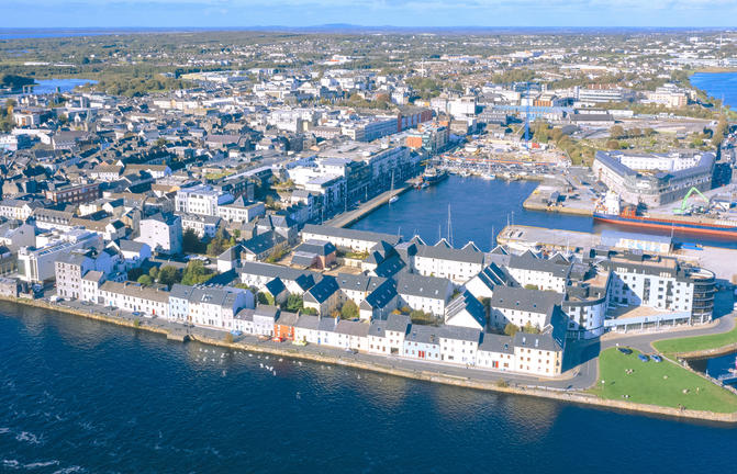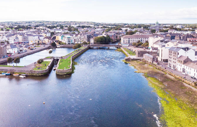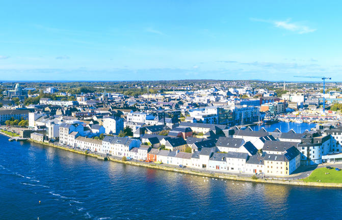 Situé sur la rive nord spectaculaire de la baie de Galway, où le fleuve Corrib coule de Lough Corrib à la mer, Galway est une grande ville universitaire tentaculaire, communément appelée la « plus irlandaise » des villes d'Irlande. Malgré la taille considérable de Galway, le centre-ville historique est minuscule, avec une atmosphère bohème émanant de ses façades colorées, de ses marchés bourdonnants et de ses habitants décontractés. Surnommée « la ville des festivals », Galway est connue comme l'endroit le plus animé de la République avec sa scène théâtrale mondialement acclamée, sa vie nocturne animée par une population étudiante animée et ses nombreux cafés cachés et restaurants excentriques avec de la nourriture vraiment excellente. Les points forts incluent : les performances impromptues constantes de la musique traditionnelle, la jolie plage de Salthill avec des eaux propices à la baignade, et la nature environnante magnifiquement sauvage.