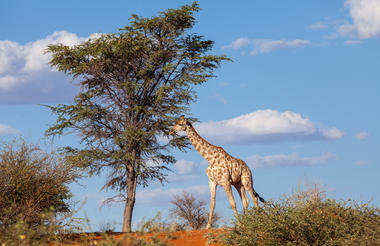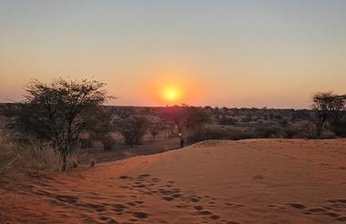Il Kalahari è un deserto vivo formato da grandi savane semi-aride, lievi dune di sabbia rossa punteggiate da alberi di acacia e una ricca fauna.