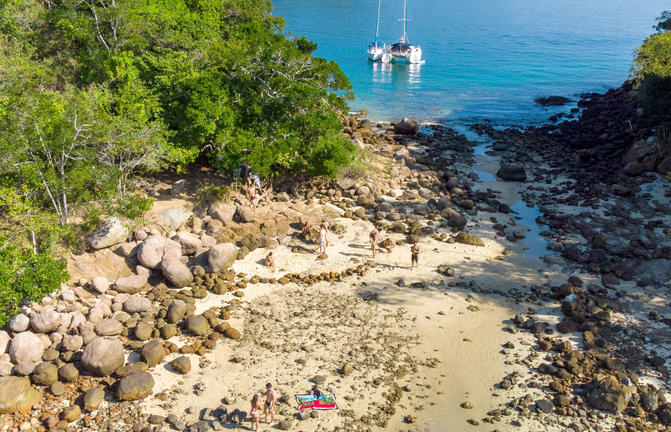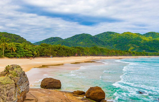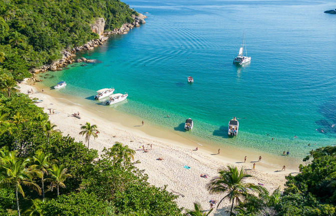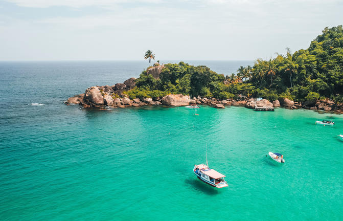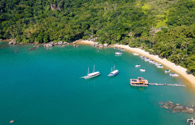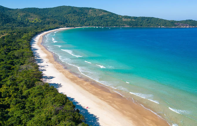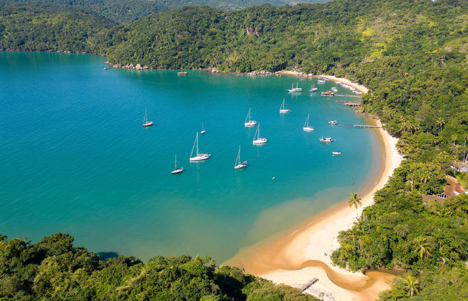 Un paradiso tropicale appena fuori dal vivace litorale di Rio de Janeiro, Ilha Grande rimane in gran parte sottosviluppata a causa della sua precedente destinazione come lebbrosario e poi di una prigione, chiusa nel 1994. L'isola di 193 km2 vanta oltre 100 belle spiagge e baie nascoste, mentre il suo interno è in gran parte coperto dalla foresta pluviale atlantica. Questa giungla incontaminata ospita alcune delle più grandi popolazioni di specie in via di estinzione, come la scimmia urlatrice, il pappagallo amazzone cigliarosse, il bradipo con la frangia e il caimano dal muso largo. I viaggiatori possono scegliere la loro spiaggia per il giorno; godersi lo snorkeling nelle baie ricche di vita marina, o fare una crociera sulla pittoresca costa in barca.