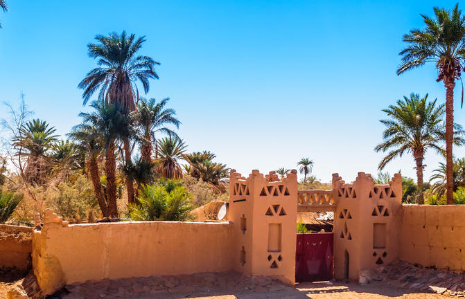 À l'intersection du Dadès et de la vallée du Draa se trouve la ville marocaine décontractée de Ouarzazate. Entourée d'un terrain incroyablement pittoresque, la ville se caractérise par la kasbah rougeoyante d'Ait Ben Haddou, les montagnes enneigées du Haut Atlas et le spectaculaire désert du Sahara avec ses dunes ondulantes, ses vastes canyons et ses gorges profondes. Ces décors exotiques ont servi de décor à de nombreux films hollywoodiens qui ont transformé cette ville autrefois endormie en une version marocaine d'Hollywood. La ville est un point d'arrêt populaire pour les touristes en route vers le Sahara. Ses boulevards bordés de palmiers sont bordés de grands palais, de souks animés, de vieux bâtiments en pisé et de studios de cinéma. C'est l'endroit idéal pour flâner dans l'un des nombreux cafés charmants, déguster une délicieuse cuisine marocaine locale et peut-être même apercevoir l'une des nombreuses célébrités qui fréquentent cette fascinante ville d'Afrique du Nord.