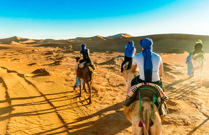 Fusion exotique des influences sud-méditerranéennes, arabes et africaines, le Maroc est une combinaison séduisante de villes anciennes et de ruines romaines, de déserts et de médinas séculaires, de mosquées et de minarets, de ruelles sinueuses et de marchés dynamiques, de magnifiques plages et de montagnes escarpées. Les villes impériales de Fès, Marrakech, Meknès et Rabat ont toutes eu un passage en tant que capitale nationale et sont généreusement parsemées d'attractions, dont une pléthore d'architecture ancienne, de musées et de souks (marchés). La ville côtière de Casablanca possède l'une des plus grandes mosquées du monde, tandis que Tanger, sur la côte méditerranéenne, dispose de belles baies et criques de sable. Les visiteurs pourront savourer une cuisine berbère exotique, siroter une tasse de café frais ou un thé à la menthe dans un café au bord de la rue, faire de la randonnée Toubkal - le sommet le plus élevé d'Afrique du Nord ou faire du trekking à dos de chameau dans le désert.