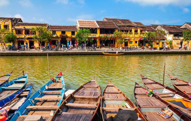 Hoi An, som betyr den fredfulle møteplassen, er en av Asias vakreste byer. Byen som tidligere het Fai Fo har stått på UNESCOS verdensarvliste siden 1999 og var tidligere Vietnams viktigste havneby. Det bærer den sjarmerende gamlebyen preg av. Her finner du nemlig Den japanske broen, kinesiske templer og bygninger med fransk touch. Byen er liten, og det er lett å bli kjent i de koselige gatene (mange av dem er stengt for motorisert ferdsel). Her fotomotiv på hvert et gatehjørne. De karakteristiske koniske stråhattene, nón lá, ser du over alt. Under hattene skimter du så vidt fjesene til de vevre damene som bærer den tunge børa si på sterke skuldre.