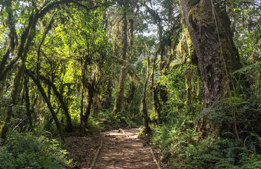 Traverse diverse ecosystems: rainforest, heath, moorland, alpine desert and glacier zone