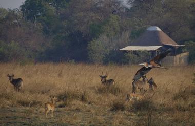The main area overlooks the Southern Busanga Plains. This area is known as the 'southern tree line', a mix of woodland and open plains, a good habitat for all kinds of wildlife sightings. Cheetah migrates seasonally to the southern plains as the grasses dry out and can be spotted more often when the Wildebeest begins giving birth.