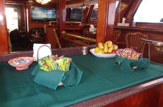 - Desayuno, almuerzo y cena gourmet durante su estancia en el barco.