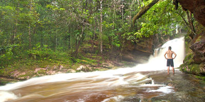 Rising above the floodplain, the upland terra firme forests, waterfalls, and cave systems of this region are home to a completely different wildlife community — including the spectacular Guianan Cock-of-the-Rock, Tamanduas, Agoutis, and an exceptional diversity of amphibians and insects.