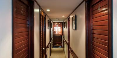 - Up to 20 guests can be accommodated in 10 ocean-facing cabins, with double or twin beds, spread across three decks for maximum privacy.