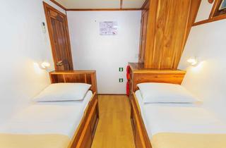 - All cabins are comfortable with hot water & air conditioning. On lower deck you have traditional portholes, while in upper deck cabins you can enjoy panoramic windows for unbroken views of the sea and islands.