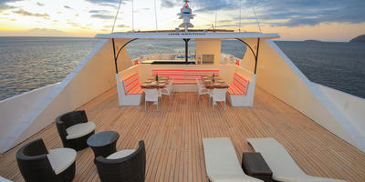 - Stylish social areas include open outside decks, lounge area, small boutique, dining room, sun terrace with Jacuzzi / hydro massage & relaxing chairs.