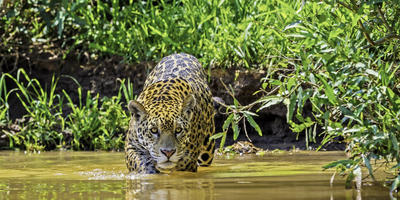 Home to the greatest biodiversity and concentration of fauna and flora in the Americas, the Pantanal's waterways, grasslands and savannahs showcase breathtaking gatherings of mammals, reptiles and birds. 5, 000 jaguars live in the Pantanal. This journey is timed to coincide with the dry season when jaguars are drawn to permanent waterholes and along the river banks to take advantage of their unwary prey animals, such as caimans and capybara, that need the river system to survive.
