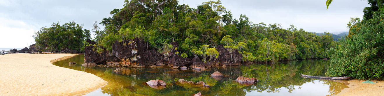 Your adventure begins with a scenic charter flight from Antananarivo to the coastal town of Maroantsetra, followed by a boat journey across Antongil Bay to Masoala Forest Lodge, hidden in a sheltered cove where rainforest merges with coral‑rich sea.