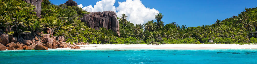 È l'isola delle palme, con spiagge gioiello come quella di Anse Lazio o Anse Georgette, una piscina dalle acque turchesi circondata da gigantesche rocce granitiche con la sabbia talmente bianca da sembrare borotalco.