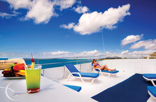 - The Monserrat Galapagos yacht's roomy social areas include a relaxing lounge, flat screen TV, bar, dining area, boutique, and sun deck.
