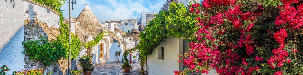 Blant bølgende åser og olivenlunder fortsetter dere til Itria-dalen, landet med «trulli». De unike steinhusene med koniske tak som minner om smurfehus. Når dere fortsetter videre sørover, mot Salento, blir landet flatere og tørrere, omgitt av vingårder. Her kan dere besøke noen av de beste strendene i regionen, i provinsen Taranto. Underveis stopper dere for å smake på nydelige oster og lokal vin.