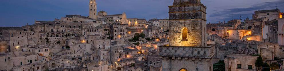 Turen starter i Matera, en levende tidsmaskin med røtter tilbake til steinalderen. Også kalt Grottebyen og Lille-Jerusalem. Der eldgamle grotteboliger (Sassi) er hugget inn i fjellet og skaper et dramatisk, trappetrinnformet landskap. Byen som tidligere var en nasjonal skam er nå et unikt reisemål med sjarmerende hotell, butikker og underjordiske restauranter. Matera har også vært lokasjon for flere filmer, blant annet James Bonds No Time to Die og The Passion of the Christs.