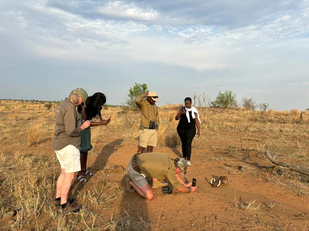 Els safaris a peu també es realitzen generalment al matí amb guies armats. Les caminades són tranquil·les i es pren temps per observar les coses més petites del matoll que normalment es perden quan es condueix. Caminar depèn de la meteorologia, o depèn de l'estat del terreny.