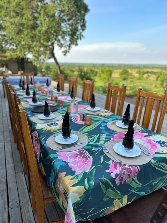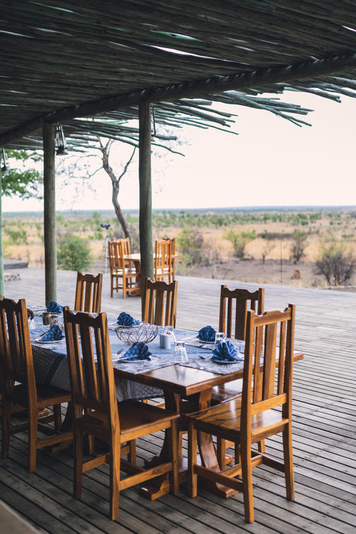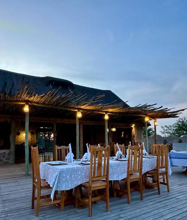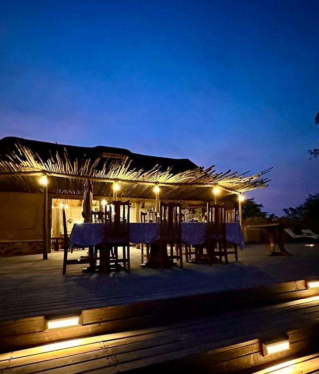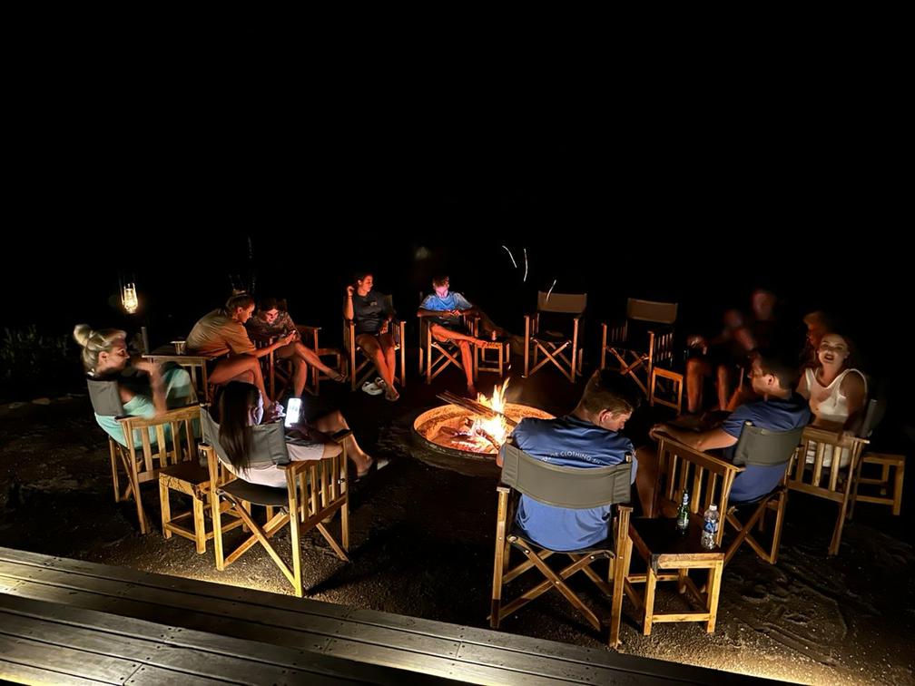 La coberta frontal ofereix una opció especial de menjador nocturn per sopar sota el cel africà i les estrelles. Estem beneïts de tenir l'opció de sopar a la calor i l'ambient de la nostra zona lounge durant les nits fredes. Després de la sessió informativa del guia al costat del foc, gaudiu d'una gorra nocturna mentre reflexioneu sobre els dies albiraments i experiències, absorbent l'ambient del foc i els molts sons nocturns.