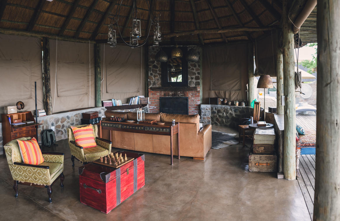 Daka planes té una zona de menjador interior i saló amb la llar de foc original de pedra per a aquelles nits fredes d'hivern. Còmodes, espaiosos seients i una extensa biblioteca que ofereix una gran varietat de llibres clàssics de safari i material de lectura variat. A l'extrem extrem de la nostra zona principal es troba la nostra barra totalment proveïda i racó de cigars.