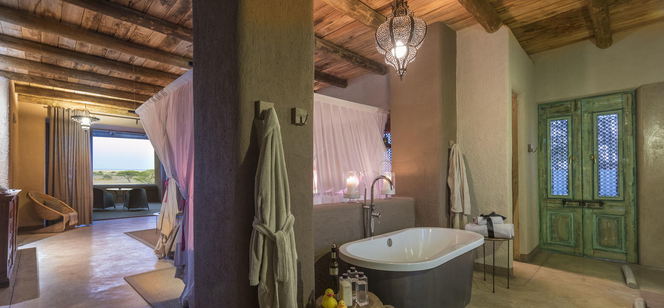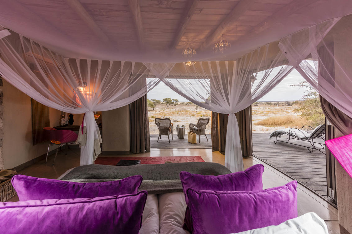 Totes les suites tenen vista sobre el pa de Fischer, a la reserva d'Etosha. Les suites estan com a mínim 50 m de distància les unes de les altres, garantint la privacitat. Cada habitació consta de dos llits individuals, llar de foc, aire condicionat, terrassa, minibar, dutxes interiors i exteriors.
