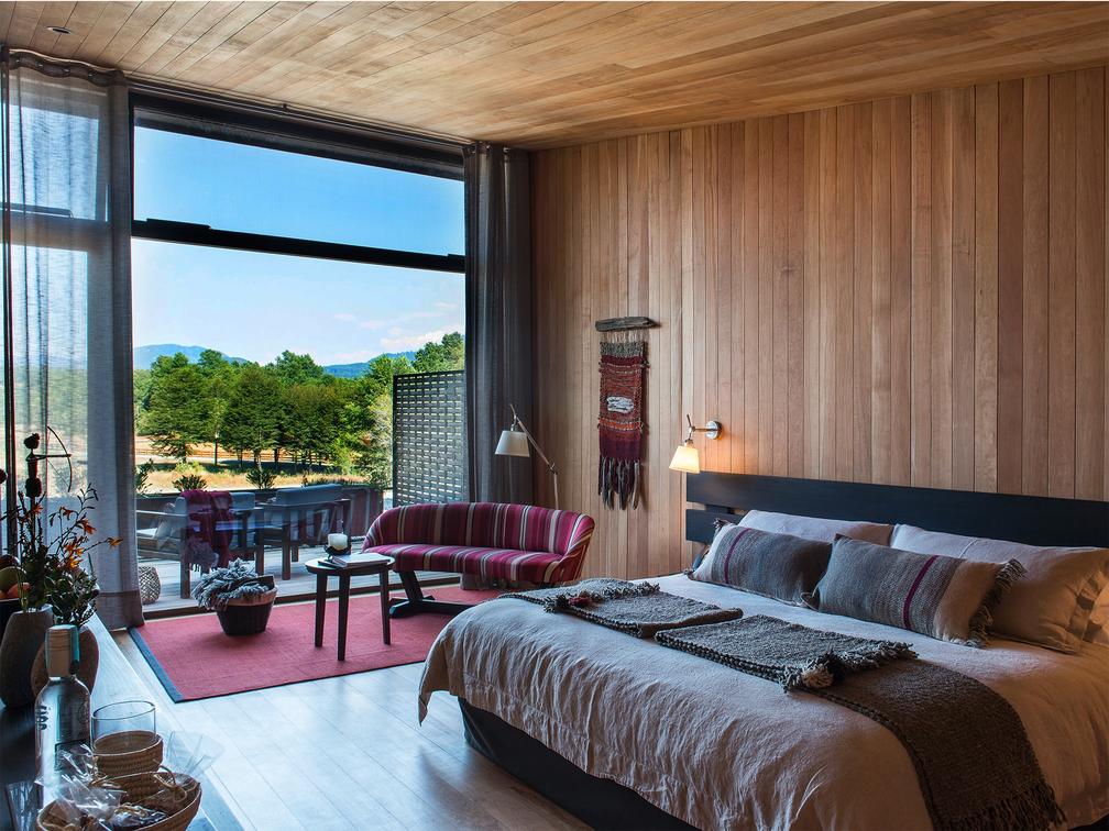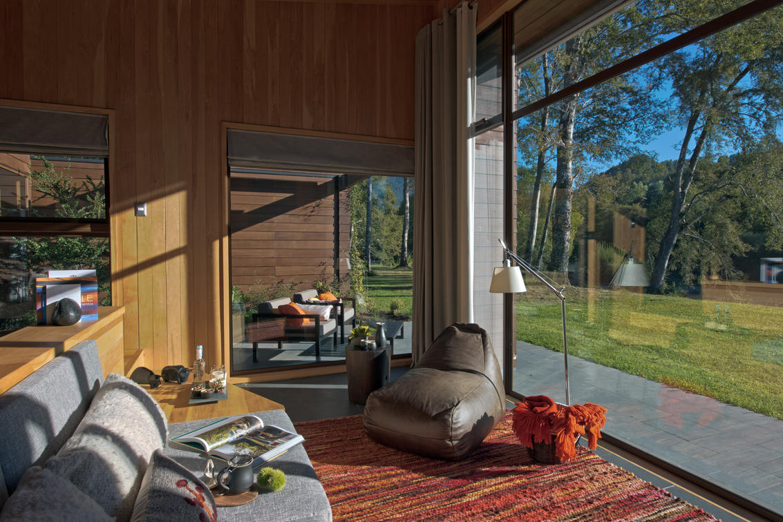 Guests can enjoy sensational views from their villas, each individually decorated with beautiful local tapestries. Inviting the light inside, panoramic windows allow for stunning views and the split-level design provides a sense of being immersed in nature. Offering unrivalled comfort and ambience, each villa comes equipped with an individual fireplace, large bathroom, spacious terrace overlooking the river and an outdoor bathtub to relax in after a day out or to marvel at the clear sparkling Chilean sky at night.