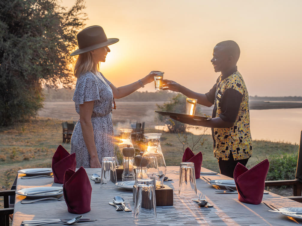 Dining at Island Bush Camp takes place in the shade of the grass roof or under the stars on the banks of the Luangwa River. Stellar meals come out of the bush kitchen which can be visited at the end of the stay.