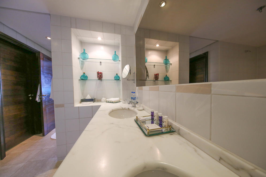 Vores diplomatiske suite måler 98 kvadratmeter og har et soveværelse med en kingsize-seng, en rummelig stue og spiseplads, et spisekammer og et separat gæstebadeværelse. Alle suiter har udsigt over den smukke hotelhave og tilstødende golfbane med Det Indiske Ocean i horisonten.