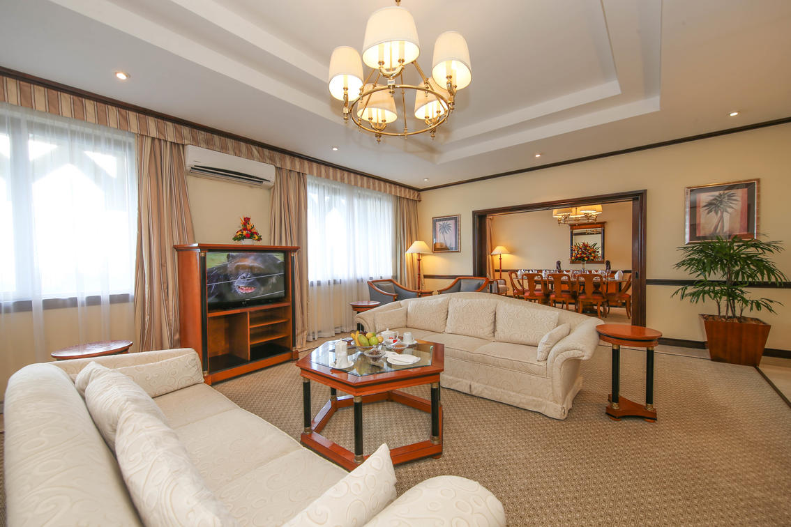 Vores præsidentsuite er 165 kvadratmeter i størrelse og indeholder et rummeligt soveværelse med en kingsize-seng med dit valg af puder fra vores pudemenu, et påklædningsværelse og et stort badeværelse. Stuen har en spiseplads med et fuldt udstyret køkken og et separat gæstebadeværelse samt et separat badekar og et brusebad i det største badeværelse. Præsidentsuiten har udsigt over hotellets smukke have og tilstødende golfbane med Det Indiske Ocean i horisonten.