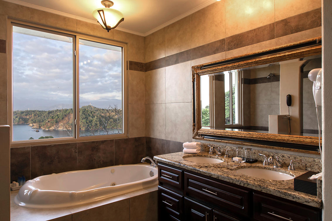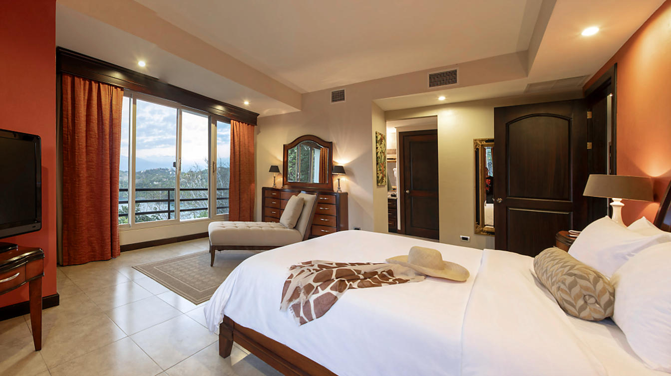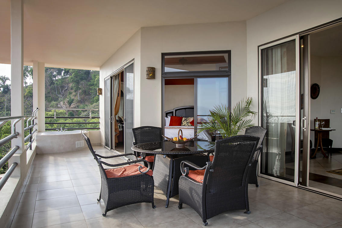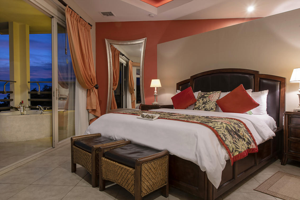 Penthouse-suiten er en af en slags. Med 2 balkoner (hver vender forskellige retninger) en med jacuzzi og udsigt til den omfattende resort og Manuel Antonio National Park, den anden til bugten og lystbådehavnen. Denne fantastiske suite har køkken, stue/spisestue, soveværelse med fantastisk udsigt, badekar, separat brusebad og to håndvaske. Det tilstødende værelse har 2 queensize-senge og et individuelt badeværelse. Ideel til familier med ældre børn eller venner.