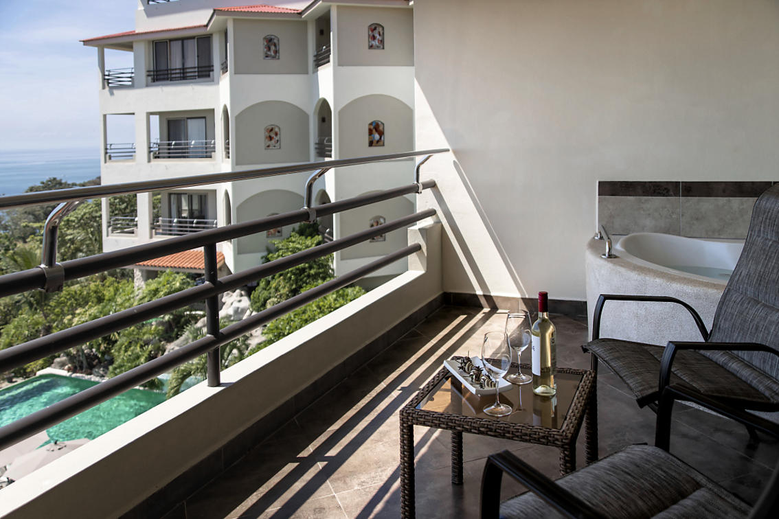 Beliggende i den nye bygning „Las Suites“, 28 suiter med havudsigt 1 soveværelse har alle tænkelige faciliteter, herunder plasma-tv, minibar, sovesofa og overdådigt badeværelse med badekar i fuld størrelse og separat bruser. Hver suite har en stor balkon med privat jacuzzi. King seng.