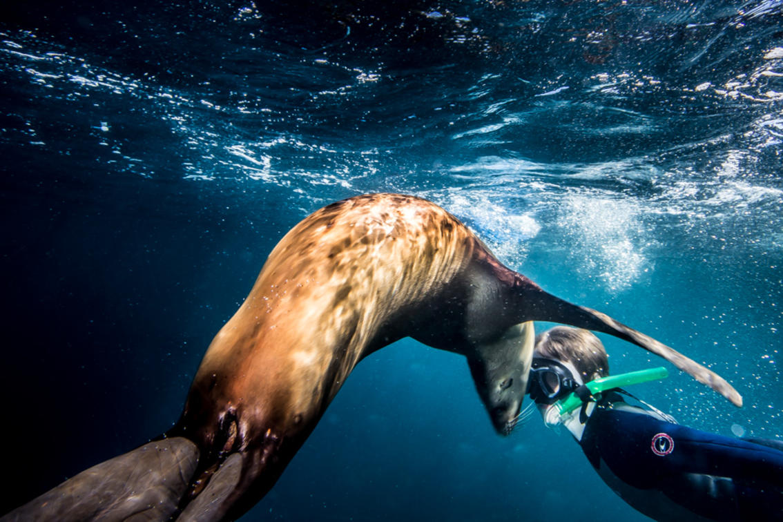 Heute ist eine maritimen Tierwelt Extravaganz eines Tages! Wir fahren Todos Santos nach La Paz, holen unsere Ausrüstung, steigen in die Boote, dann geht es zur unglaublichen Freude am Schwimmen und Spielen mit den Seelöwen Welpen in der permanenten Seelöwenkolonie Los Islotes. Diese lustigen Meeressäugetiere lieben es, mit Menschen zu spielen und zu interagieren, und sind immer enttäuscht, dass wir nie ein Schlagspiel so lange wie möglich aufrechterhalten können. Der Weg zur Seelöwenkolonie macht den halben Spaß des Tages, da wir regelmäßig Delfine, Wale, Mantas, Meeresschildkröten, Küstenvögel und mehr auf dem Weg dorthin und zurück sehen. Wir schließen diesen wunderbaren Tag mit einem leckeren Picknick-Mittagessen an einem der wunderschönen Strände auf der unvergleichlichen Isla Espiritu Santo ab. Es ist ein absolut fabelhafter Tag!