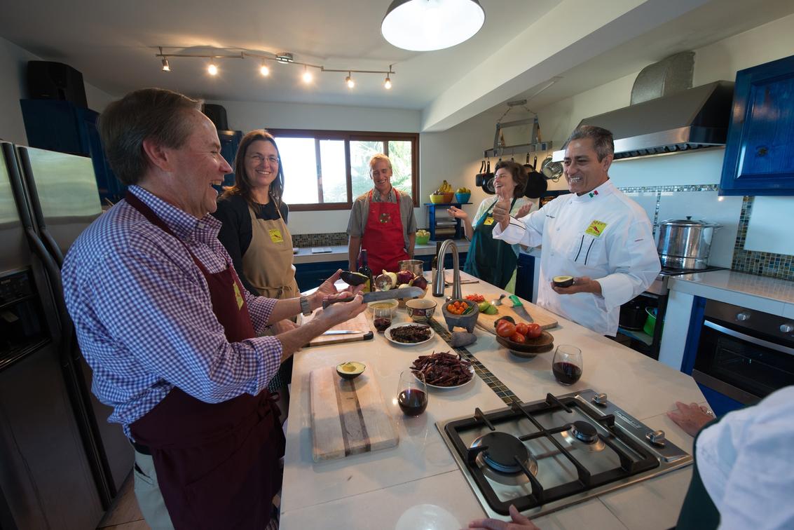 Lokaler Anwalt wurde Küchenchef Iker Algorri, Autor von Cooking Adventures in Baja California Sur und Chef-in-Residence in Los Colibris Casitas, führt diesen wunderbaren mexikanischen Survival-Kochkurs. Der Schwerpunkt liegt darauf, so viel Spaß wie möglich zu haben, die perfekte Margarita zu machen und die Fähigkeit zu gewinnen, einige wirklich köstliche mexikanische Gerichte nach der Kochphilosophie von Chefkoch Iker, der Pracht der Einfachheit, zuzubereiten. Sie werden wahrscheinlich auch etwas über tolle lateinische Musik lernen, die Sie noch nie zuvor gehört haben. Aber seien Sie gewarnt — Tanzen, die oft bekannt sind, dieser Klasse zu folgen!