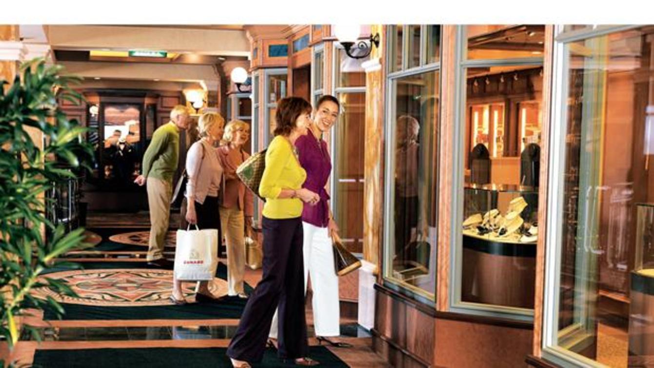 Die sehr traditionelle Royal Arcade präsentiert berühmte Marken und schicke Designer-Boutiquen in ungefüllten Eleganz auf Deck 3. Inspired von Londoner Burlington Arcade, finden Sie Shop-Marken, die noch nie zuvor auf See erhältlich waren - Hackett, Harris Tweed, Anya Hindmarch und Fortnum und Mason. Sie können auch Geschenke oder Designerbekleidung aus der Cunard Signature Collection kaufen.
