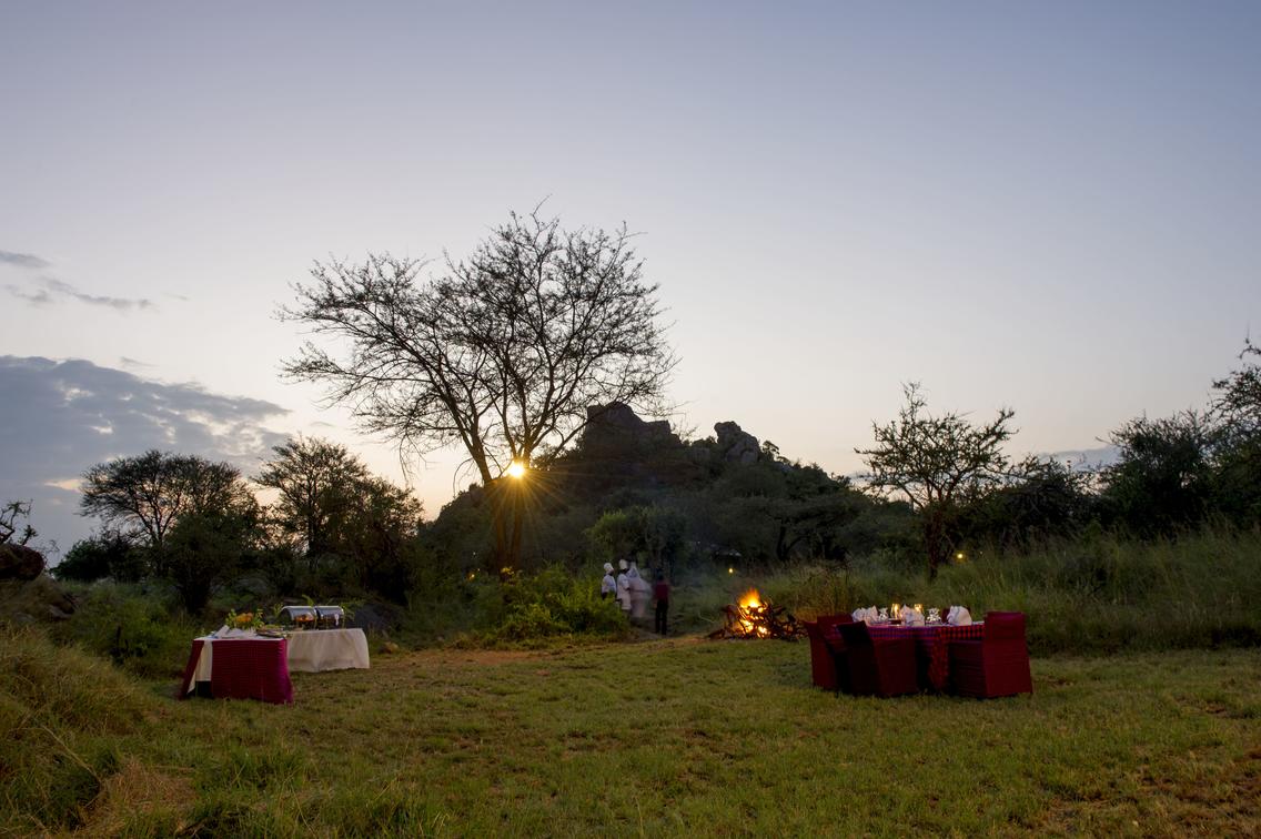 Genießen Sie einen Sundowner am Lagerfeuer, bevor Sie ein Fünf-Gänge-Menü genießen, das auf dem glühenden Holzkohlegrill zubereitet und von Massai-Tänzen und -Liedern begleitet wird. Fleisch, Fisch und Geflügel werden durch vegetarische Gerichte, Salate, Obst und Desserts aus dem Hauptcamp ergänzt. Eine voll ausgestattete Safari-Bar ist ebenfalls vorhanden.