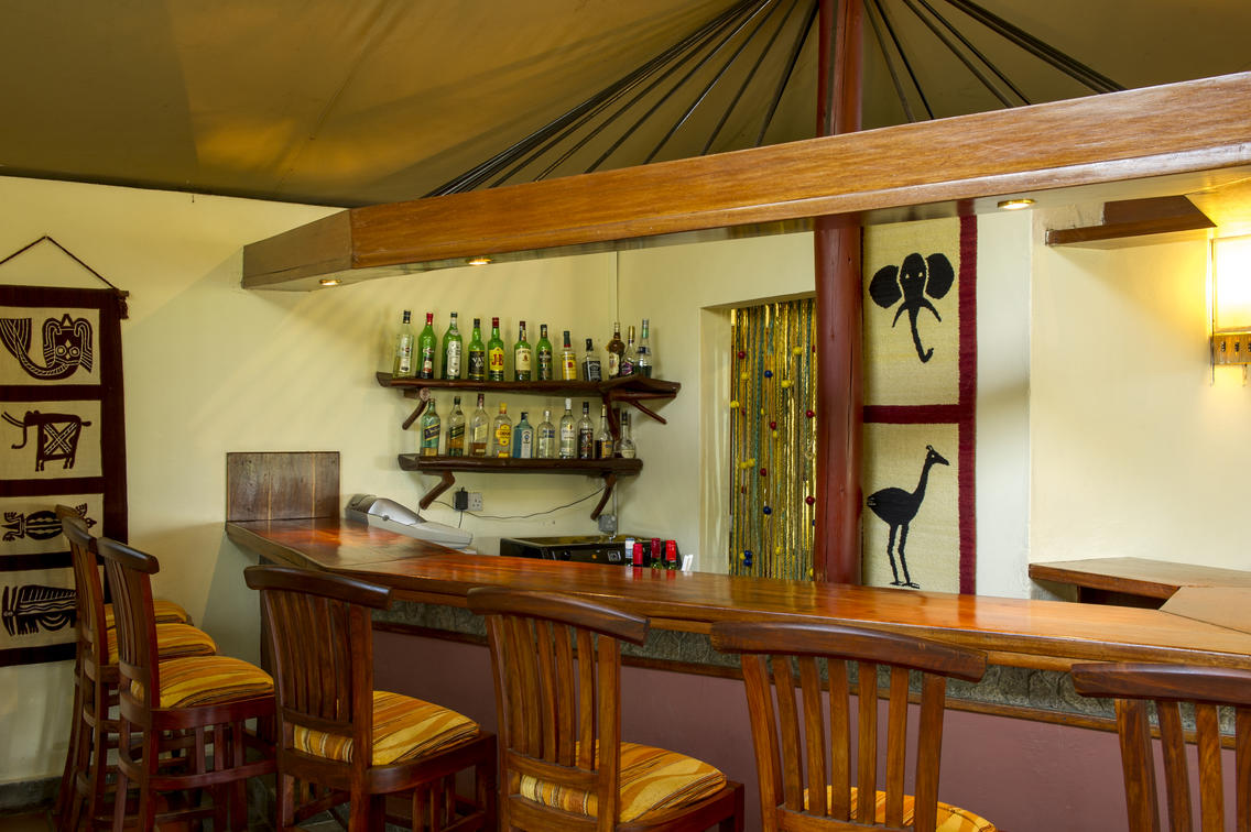 Unsere stilvolle Bar befindet sich im zentralen Loungebereich des Camps und ist ein willkommener Ort für einen Cocktail mit Freunden nach einem erfolgreichen Safari-Tag.