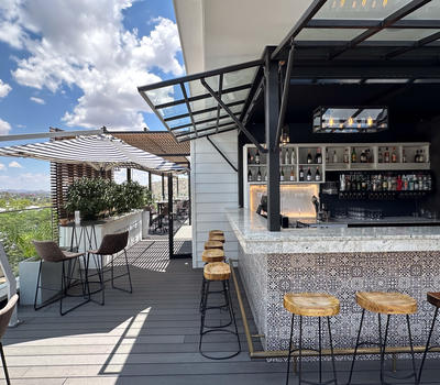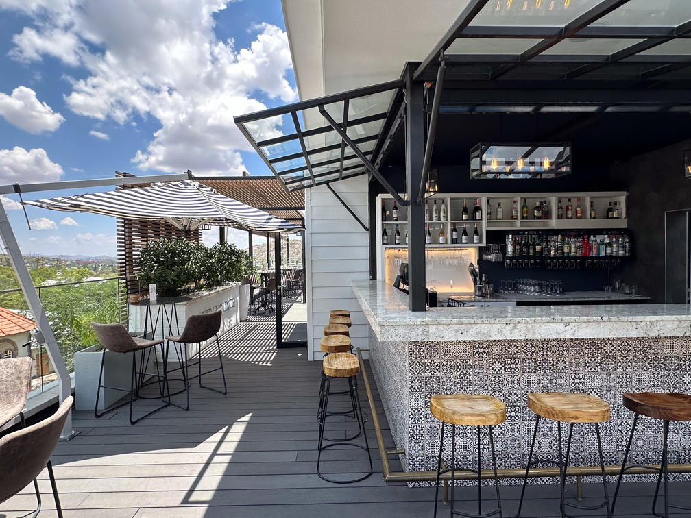 Buchen Sie für einen Sundowner und ein Tapas-Dinner mit Aussicht einen Tisch in der Sky Lounge mit Panoramablick. Beenden Sie Ihren Tag bei Cocktails mit Freunden, Familie oder Geschäftspartnern – die Aussicht wird Ihnen den Atem rauben.