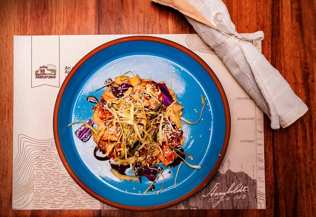 Die Novoandina-Küche von Abraspungo, ein kulinarischer Stil, der von Feinschmeckern kreiert wurde, um die Essgewohnheiten der Vergangenheit aufzugreifen und die einheimischen Zutaten der Region wie Quinoa, Mais, Chochos, Bohnen und andere zu retten, die mit überlieferten Techniken angebaut und geerntet werden, um lokale Märkte zu beliefern, und wo sich die Köche von Abraspungo die entsprechende Inspiration holen, um besondere Gerichte zuzubereiten, indem sie kulinarische Gourmettechniken mit lokalen Aromen kombinieren.