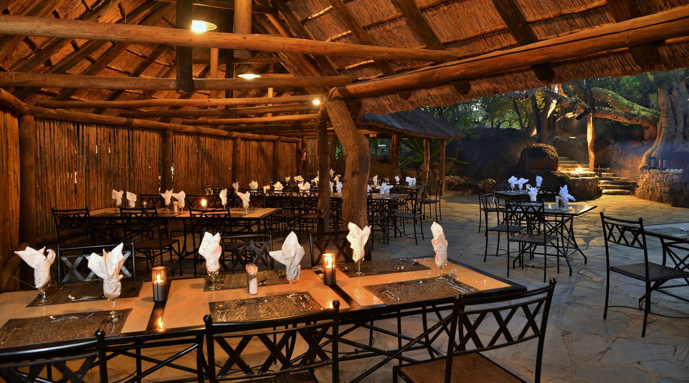 Das Mvubu Deck ist ideal für kleinere Gruppen und bietet Aussicht auf einen kleinen Damm und ist zum Frühstück, Mittag- und Abendessen sowie Galadinner, Themenabende und Hochzeiten erhältlich. Das Mvubu bietet Platz für bis zu 60 Personen und ist nur wenige Gehminuten von der Hauptlodge entfernt und bietet Buffetgerichte sowie Unterhaltung in der Unterkunft bis 23 Uhr.