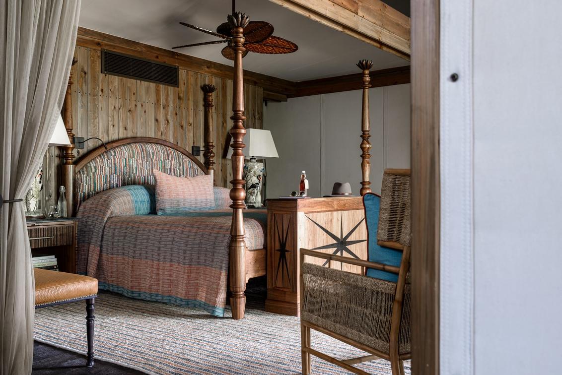 • Zwei Schlafzimmer mit eigenem Bad (eines davon hat ein Doppelbett, während das andere mit zwei Einzelbetten ausgestattet ist, die mit einem Matratzenkonverter in ein Kingsize-Bett umgewandelt werden können), jedes mit Ankleideraum und Außendusche; • Zwischenlounge und • private Terrasse mit Pavillon im Freien.
