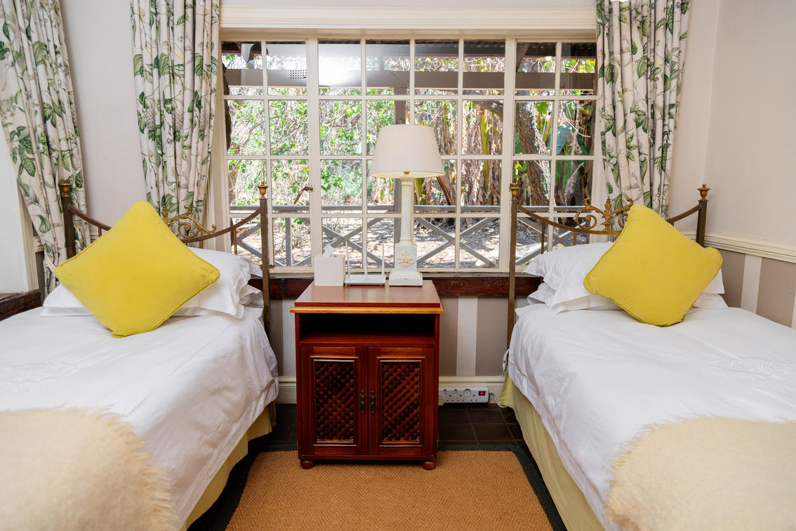 Standard Zweibettzimmer im 2-Zimmer-Gartenhaus. En-suite Badezimmer mit Badewanne.