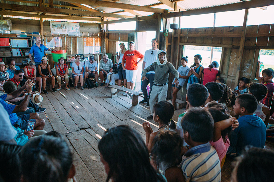 Auf einem Schiffsausflug in die umliegenden Dörfer können die Gäste Dorfbewohner treffen, an einer örtlichen Schule teilnehmen und sich bei Aqua Expeditions über unsere ökologischen und tierschutzbedürftigen Programme informieren. Erfahren Sie von erfahrenen lokalen Guides, wie indigene Gemeinschaften in dieser abgelegenen Gegend tief im peruanischen Amazonas ihren Lebensunterhalt verdienen.