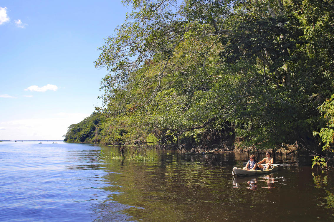 Sie können versuchen, das ruhige Wasser des Amazonas mit dem Kajak zu fahren, während Sie nach den Wildtieren des Amazonas Ausschau halten. Kajak- und Kanuausflüge sind sowohl in der Niedrigwasser- als auch in der Hochwassersaison möglich.