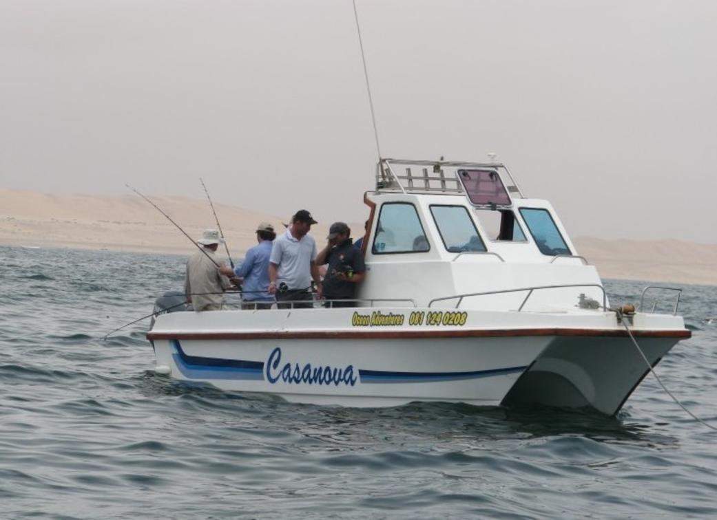 Ocean Adventures Angling Tours bietet die folgenden Aktivitäten in Swakopmund, Namibia an: Bootsfischen (unten); Hochseefischen (Schnorcheln) und Strandfischen.