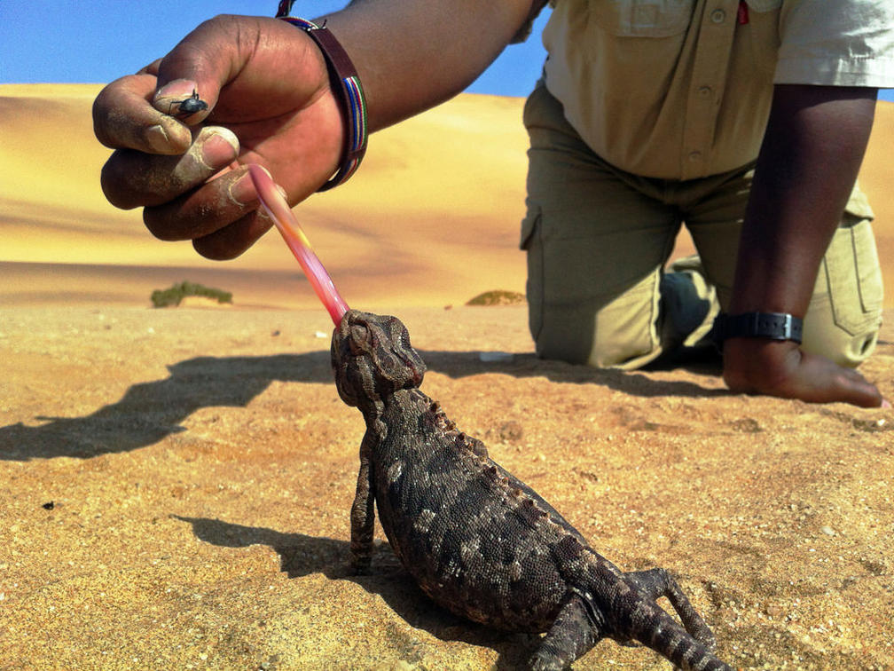 Tommy's Living Desert Tours geht in die Dünen-/Kiesebene, um die kleinen Kreaturen zu verfolgen - Schlangen, Chamäleons, Geckos, Eidechsen, Skorpione, Insekten, etc.