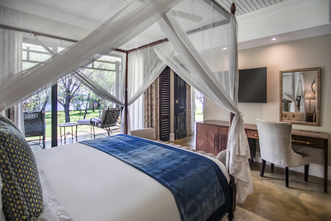 In unseren Deluxe-Zimmern im Erdgeschoss können Sie die Majestät der Natur nach Belieben bewundern. Verbringen Sie sonnige Morgen auf Ihrer Terrasse in Gesellschaft freilaufender Zebras. Halten Sie Ausschau nach Nilpferden, die den Fluss hinunterschwimmen und nach unten wandern, um sie mit nur wenigen Schritten zu begrüßen.