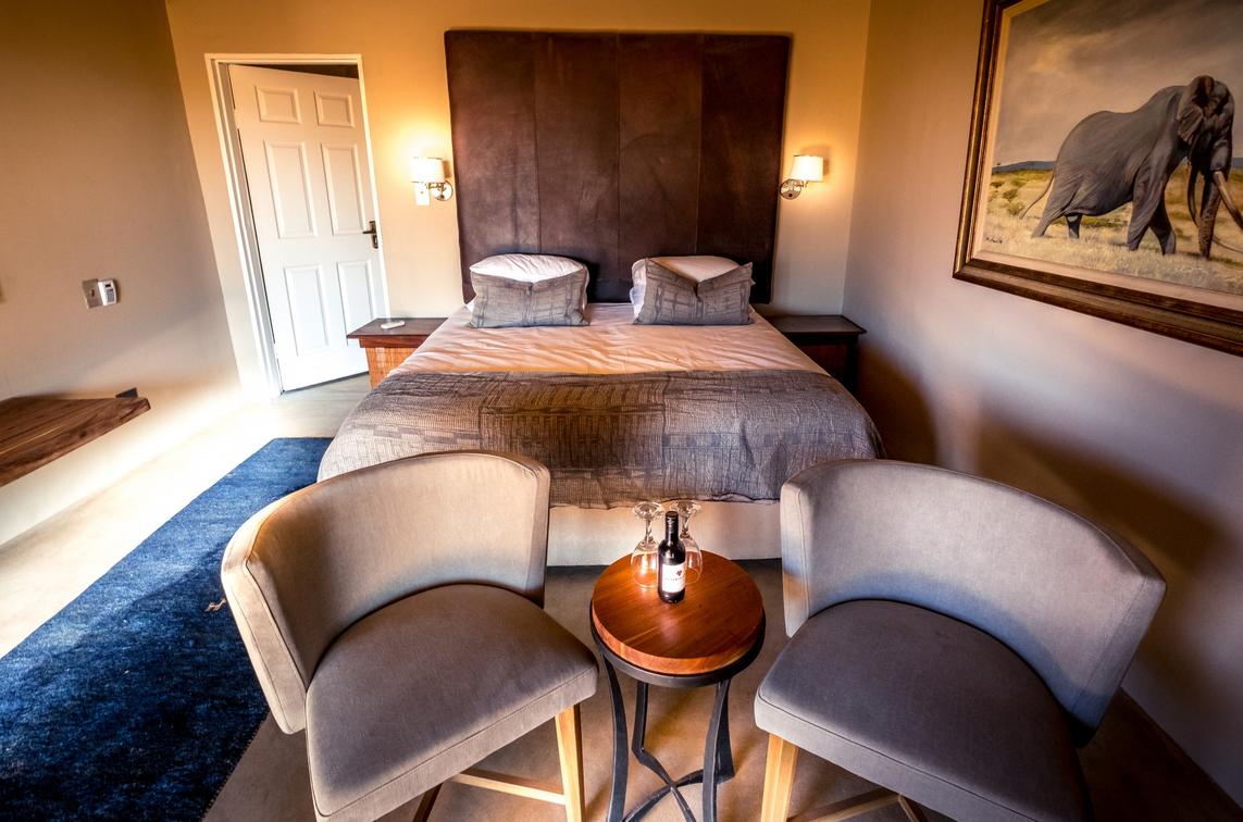 Es gibt insgesamt 3 luxuriöse Zweibett-/Doppelzimmer, jedes mit eigenem Eingang/Tür von der Veranda, Klimaanlage und eigenem Bad (Dusche und WC). Die Zimmer sind alle mit einer hochwertigen, stilvollen Inneneinrichtung ausgestattet und bieten einen herrlichen Blick auf die Salzpfanne und das umliegende Savannenbuschland.