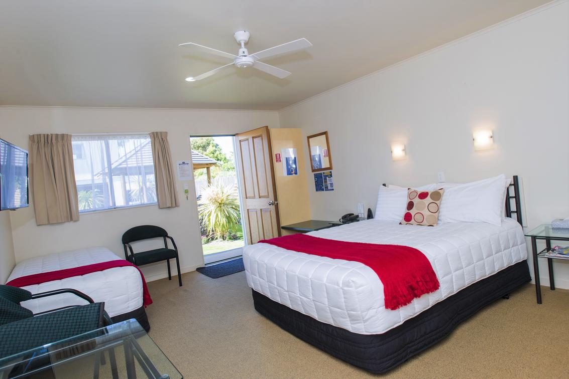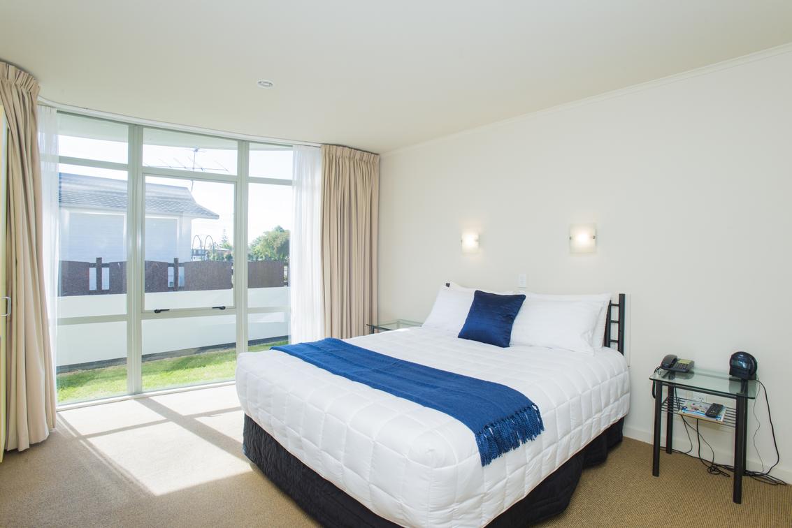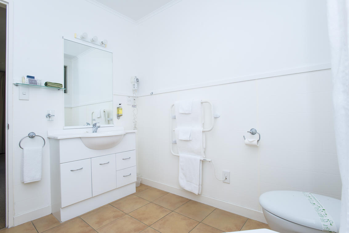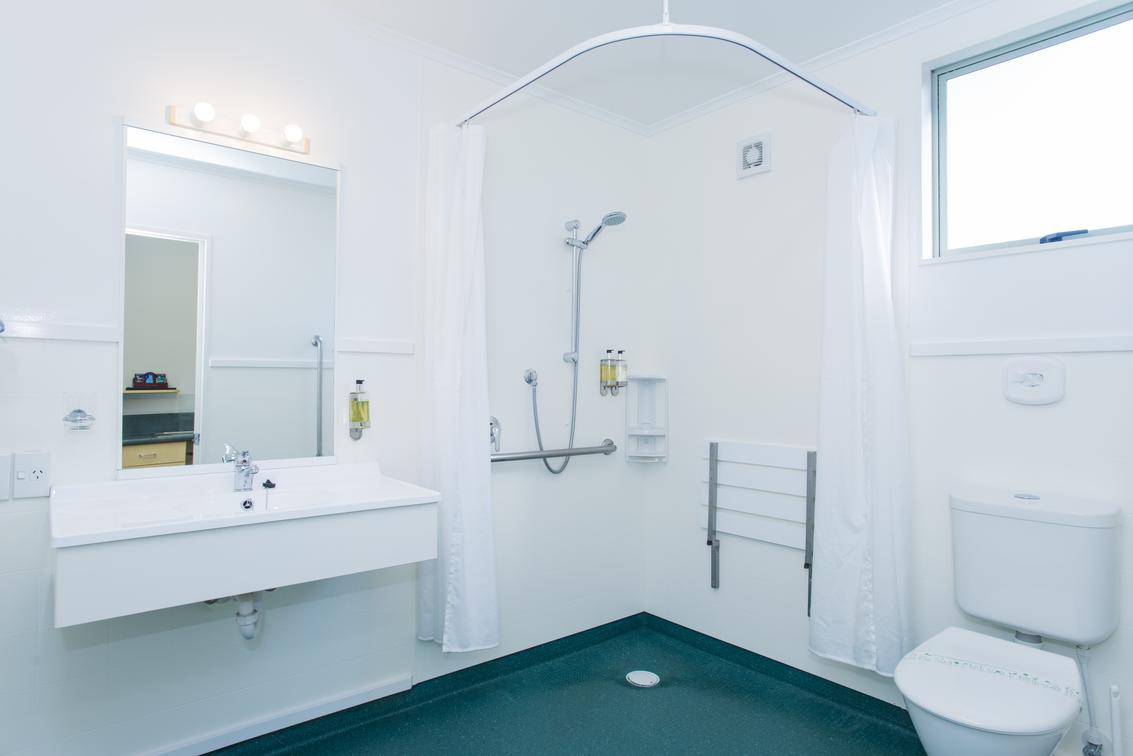 Ein Queensize-Bett und ein Einzelbett. Rollstuhlgerechte Küche und Bad. Alle Bänke sind gesenkt.