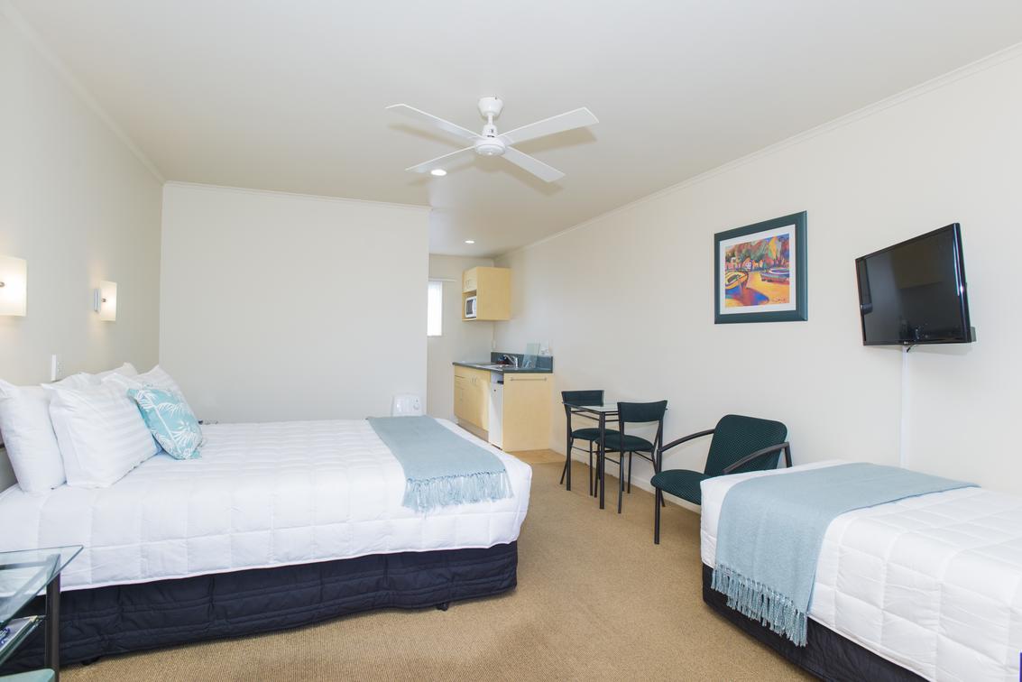 Sonnige, geräumige Studio-Einheit mit einem Queensize-Bett, einem Flachbild-TV, einem Kochfeld, einer Mikrowelle und Küchenutensilien. Diese Unterkunft verfügt über eine Dusche über eine Whirlpool-Badewanne. 8 Sky-Kanäle und 18 Freeview-Kanäle. Gesichter Hauptstraße